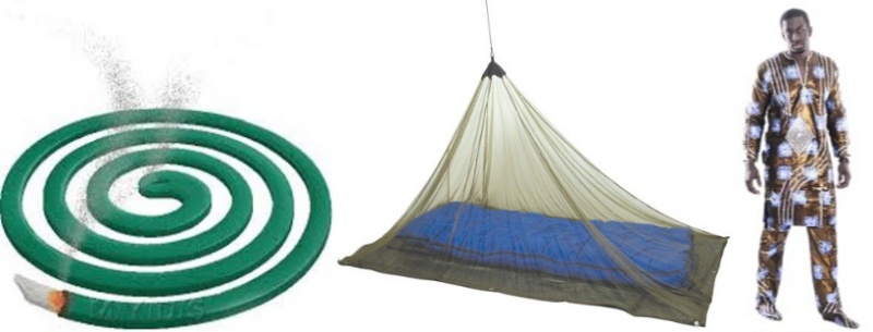 You can help prevent malaria by using a mosquito coil, sleeping under a mosquito net and wearing long clothes.